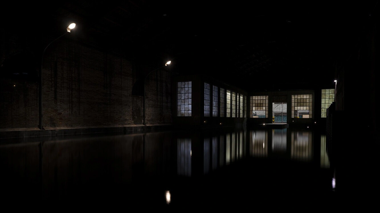 Pavilionul Italiei este unul dintre pavilioanele unde aș vrea să revin dacă m-aș întoarce la Veneția. Artistul Gian Maria Tosatti a creat o instalație site-specific, în spațiul Tese delle Vergini, de 6.500 de metri pătrați, care pornește de la istoria Italiei și declinul industriei în secolul XX. History of Night and Destiny of Comets este o reflecție asupra destinului umanității, construit pe dualitatea dintre om și natură, dezvoltare durabilă și teritoriu, etică și profit. Pe parcursul vizitei, te plimbi prin ateliere, spații industriale și depozite; ajungi într-un apartament sumbru și slab iluminat, cu vedere spre o fabrică de textile cu zeci de mașini de cusut – probabil cea mai impresionantă parte vizuală a instalației. Un mesaj sub formă de anunț îți cere să păstrezi tăcerea, ceea ce face ca liniștea din spațiu să devină un element în sine al cadrului distopic. Momentul culminant, care o să rămână cu mine mult timp de acum încolo, a fost când am intrat într-o încăpere imensă, complet întunecată, pe o platformă deasupra apei, iar din depărtare se vedeau niște lumini de licurici, sugerând că cineva ar putea fi acolo. Această scenă a fost inspirată din articolul „The vacuum of power” (1975), publicat de scriitorul și regizorul Pier Paolo Pasolini, pentru Corriere della Sera. O analiză care denunță simbolul unei umanități eșuate, a unei societăți hipertehnologizate care, prin poluarea mediului înconjurător, a condamnat licuricii la dispariție.