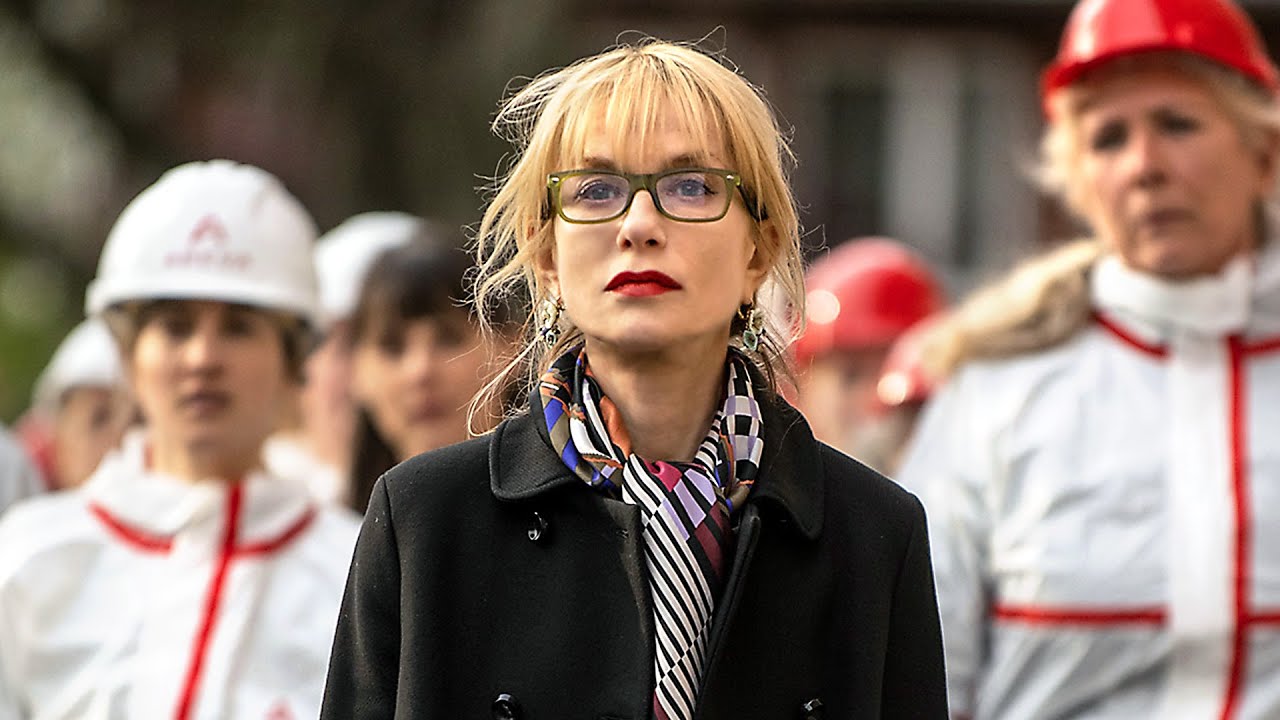 Cunoscuta actriță o interpretează aici pe irlandeza Maureen Kearney, sindicalistă la fel de cunoscută, dar mai ales pe plan local, care a alertat opinia publică în 2012 cu privire la o serie de afaceri de culise dubioase din sectorul nuclear francez – înainte să fie amenințată și redusă la tăcere printr-un act de barbarie a cărui autenticitate a fost contestată, pusă în cârca unei pretinse „isterii” tipic femeiești. În rol, Huppert este cum altfel decât bună: cu vocea ei baritonală și alura decisă, funcționează perfect în rolul unei femei decise să țină piept patriarhatului în ciuda fragilității sale. Aici e schepsisul: Kearney-din-film nu e un icon feminist decât in extremis, din nevoia de a-și proteja însăși demnitatea umană, nu printr-un mod de viață asumat. Dar ea devine o portavoce atunci când politicile antisociale și misoginia abia mascată își dau mâna pentru a scăpa de această femeie, o încurcă-lume care împiedică boșii de la vârf să își continue nestingheriți matrapazlâcurile.