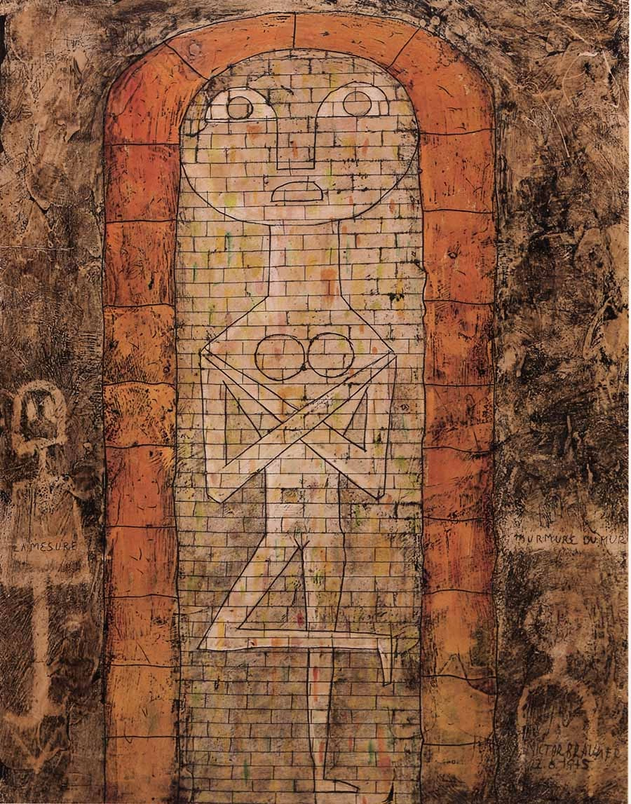 Recursul la legende din folclorul românesc este prezent în două tablouri realizate în anul 1945, Murmurul zidului (Murmure du mur) și Măsura ( La Mesure). Alături de mențiunea „povestea meșterului Manole“, Brauner notează într-un carnet proiectele celor două tablouri, creînd un joc de cuvinte între le murmure du mur și la mesure mûre. Tablourile amintesc un mit fondator în ritualurile de construcție din spațiul mediteranean, în care tema sacrificiului este corelată cu fundamentul unei construcții. În legenda românească, tînăra soție a Meșterului Manole este zidită în construcția mănăstirii Argeșului. Într-una dintre variantele legendei, cei nouă ucenici ai Meșterului Manole devin pietre, iar meșterul se transformă în izvorul deasupra căruia a fost construită fîntîna din împrejurimile mănăstirii. Noua tehnică folosită, pictura în ceară, conferă tablourilor acel aspect arhaic, miraculos, secret, căutat în creația suprarealistă.