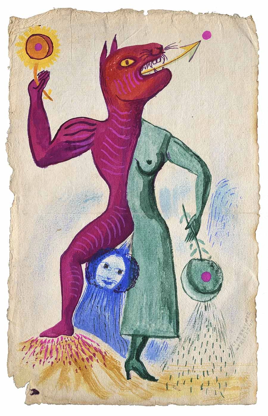 Tema alchimică a „uniunii contrariilor“ este înțeleasă ca un proces psihic al cărui rezultat este reprezentat prin „piatra filozofală“ sau Androginul alchimic. În 1940, dubla figură (masculin/feminin) din tabloul Nașterea Materiei (1940) trimite la descrierea spiritului primordial din vechile texte în care androginul este arhetipul umanității situate în afara istoriei, a unei lumi primitive sau paradisiace, pentru care existența umană se afla în armonie cu întregul Univers. Pe calea scrierilor romanticilor germani, pentru care androginul reprezenta omul desăvîrșit al viitorului, ele se numără printre sursele de inspirație ale creatorilor suprarealiști.
