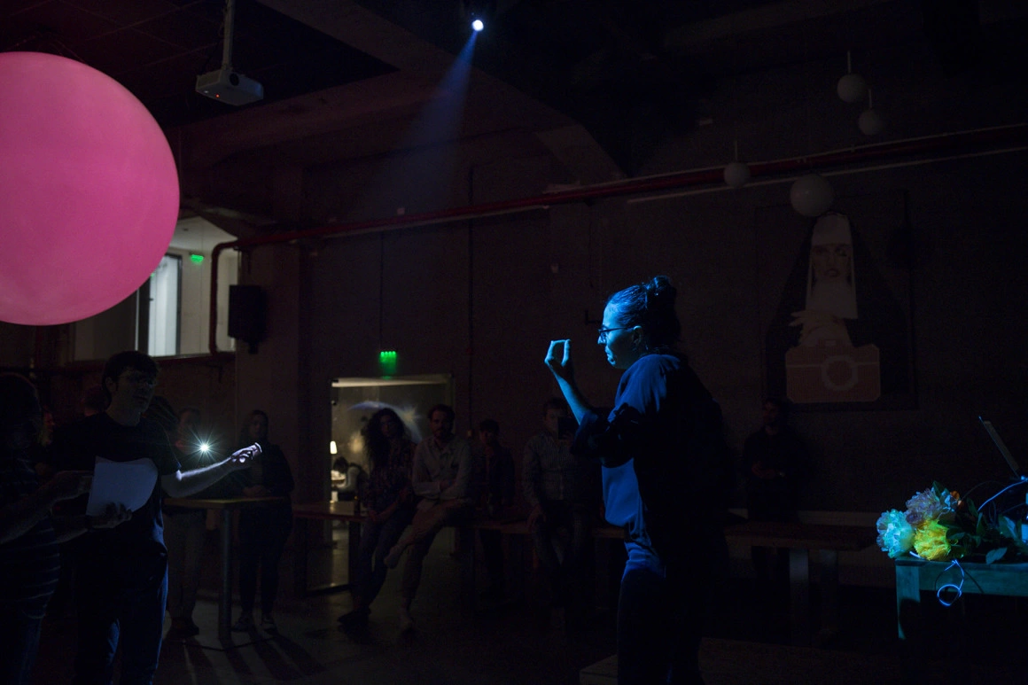 La fel ca la școală, participarea surzilor la evenimentele de socializare din oraș e descurajată de lipsa interpreților. La petrecerea de la finalul lunii septembrie, Bogdan Anicescu a interpretat hip-hop de B.U.G Mafia și Moulin Rouge. Până la vârsta de 30 de ani, nu și-a închipuit că va urca pe scenă. La asociație lucrează din 2010, ca interpret și asistent social. Anul ăsta s-a apucat de interpretare muzicală. „Noi găsim acele corespondente vizuale pentru limbajul figurativ al versurilor, nu interpretăm cuvânt cu cuvânt”, îmi explică el procesul. Bogdan nu are probleme cu auzul, așa că îi ajută pe interpreții cu deficiență și îi sincronizează cu timpul melodiilor, chiar pe scenă. La festivalul Afterhills, din Iași, a interpretat, alături de Eliza, piese de la Șuie Paparude. „Ei au multe melodii despre cum simți sunetele: cum îți intră în ureche și te mișcă. Noi am zis că nu se potrivește pentru persoana surdă, pentru că ea nu-și folosește urechea pentru a trăi muzica, ci celelalte simțuri, în special văzul și sensibilitatea vibratilă. Eliza a avut ideea asta, pe care a redat-o publicului: semnul ajunge din mâna mea până-n corpul tău și te schimbă pe dinăuntru. Inima ta moare atunci când semnul dispare”.