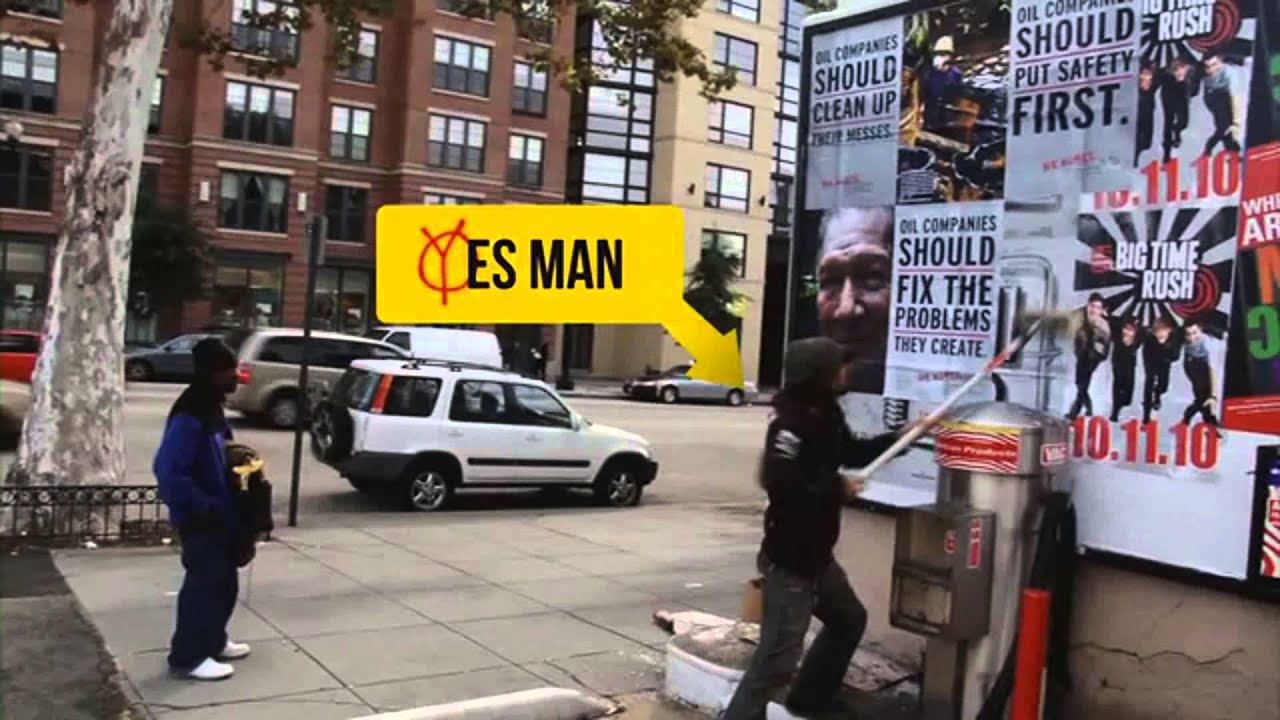 Și chiar a fost. Una din zecile de hoax-uri pe care activiștii americani Jacques Servin și Igor Vamos le-au copt în ultimii 20 și ceva de ani sub numele de Yes Men. Victime au fost mega-corporații sau instituții guvernamentale obișnuite să-și ascundă gunoiul sub preș, prin campanii uriașe de spălare a imaginii. De la mijlocul anilor ‘90 încoace, Jacques și Igor și-au construit un fel de artă a sabotajului și-au transformat farsa elaborată într-un mijloc de-a aduce pe agenda publică frânturi de adevăr indigest. Au făcut un site fals pentru Organizația Mondială a Comerțului, unde companiile erau sfătuite, printre altele, să cumpere voturi direct de la cetățeni. Au făcut o pseudo-conferință a Camerei Americane de Comerț, la care au anunțat că instituția își va revizui politica în materie de schimbări climatice, în defavoarea lobby-iștilor. Au distribuit 80.000 de exemplare dintr-o ediție falsificată a ziarului New York Times, în paginile căruia George W. Bush își făcea mea culpa. Ș.a.m.d.