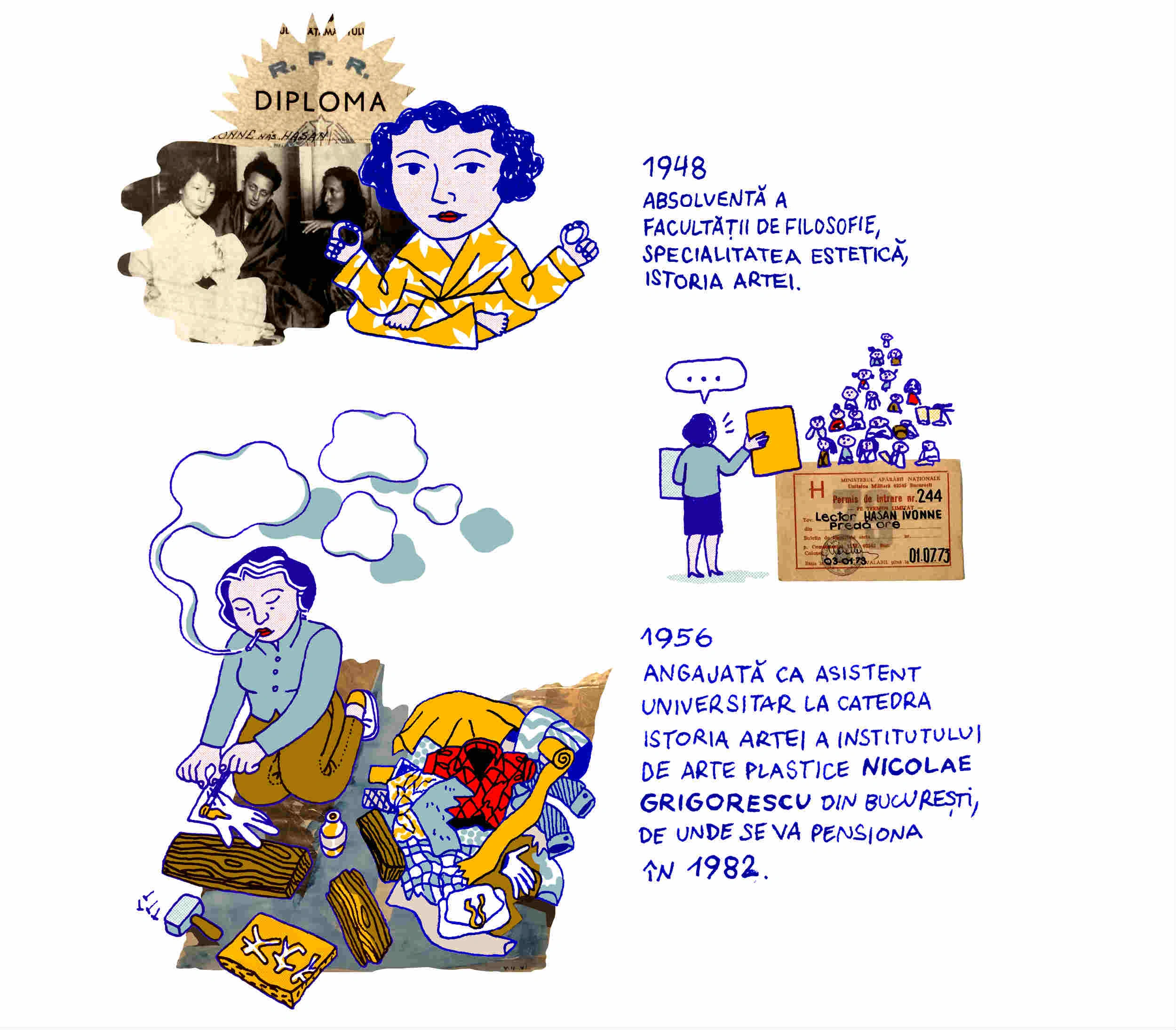 Până duminică, 16 iunie, mai puteți vedea la Muzeul Național de Artă Contemporană, expoziția dedicată lui Yvonne Hasan. Și fiindcă numele ei nu e mai deloc cunoscut pentru munca artistică (deși a fost teribil de prolifică și de versatilă), am invitat-o pe ilustratoarea Sorina Vazelina să ne facă cunoștință.