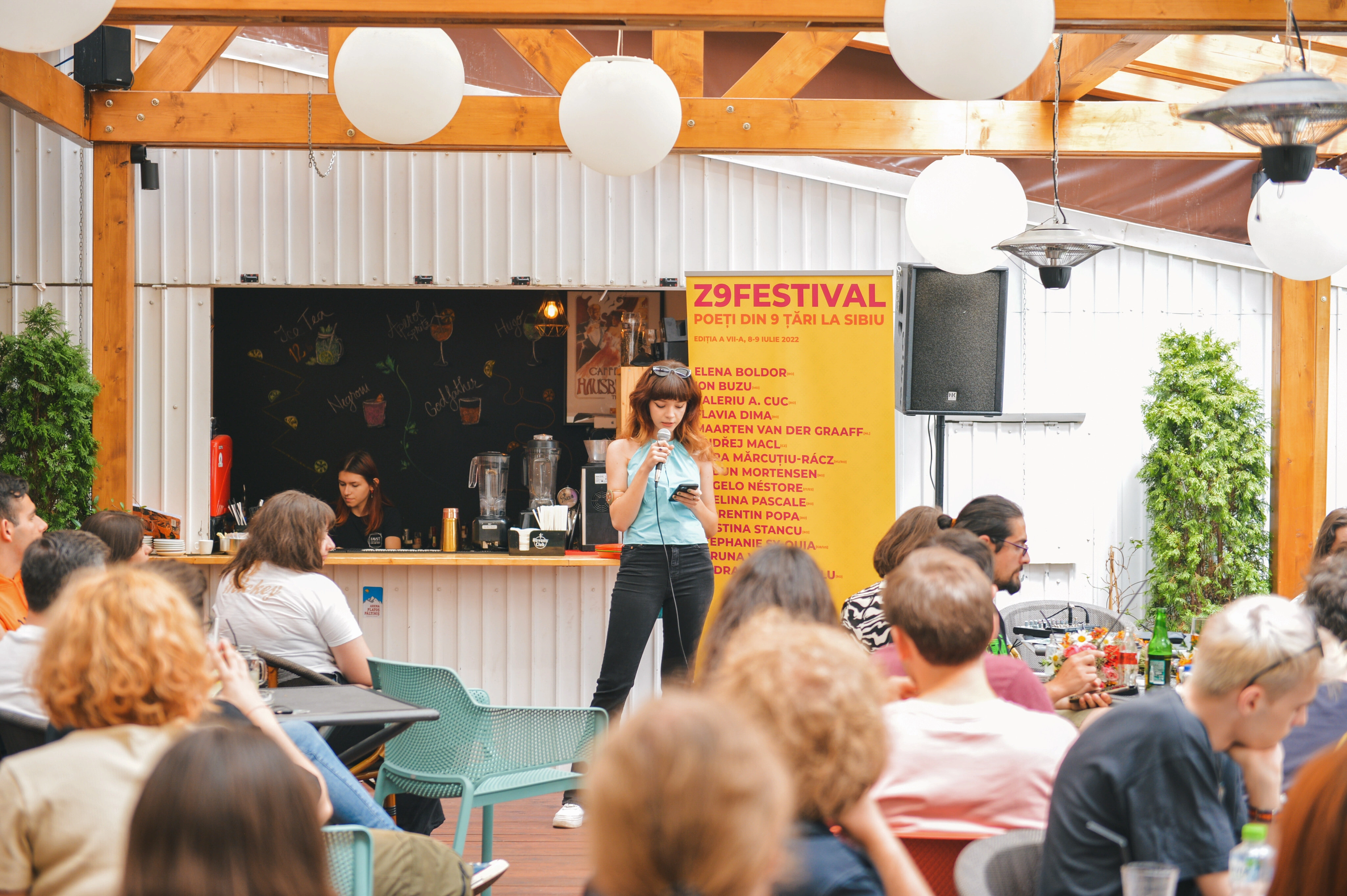Insist asupra acestor aspecte tehnice și ambientale deoarece sunt deosebit de importante pentru orice festival literar. Puțini înțeleg ce rol masiv joacă munca din culise, amenajarea scenei, conceperea listelor sau chiar orașul în sine pentru un eveniment de acest tip. Centrul Sibiului, cu ansamblul său de scări șerpuite, clădiri săsești vechi și pasaje pietonale, a devenit arena extinsă a unor lecturi dintre cele mai diverse. Într-adevăr, festivalul a adus mai multe poetici laolaltă, din care publicul era liber să-și aleagă ce vrea sau, dimpotrivă, să respingă pe cine vrea. Fie că vorbim despre performance-ul carismatic al lui Macl, despre acuitatea conceptuală a poemelor lui van der Graaff, despre romantismul social din poeziile lui Cuc, despre ecourile Alt Lit ale unor Boldor și Mortensen sau despre problematizările queer din textele lui Néstore (ca să dau doar câteva exemple), diversitatea stilistică și tematică a fost mai mult decât evidentă. Dacă ar fi să identific un factor comun ce înglobează întreaga experiență Z9FESTIVAL, acesta ar fi conștiința macrosocială vizibilă în majoritatea fragmentelor citite vineri și sâmbătă. În acest sens, nu este o întâmplare faptul că wildcard-ul – oferit în cadrul unui concurs care a permis anual câte unui nedebutat ales de redacție să citească la festival – a ajuns la Flavia Dima, pe care o admiram deja de mulți ani pentru munca sa de critic de film. Ca poetă, speculez că ceea ce a separat-o pe Dima de alți participanți a fost, o dată, atenția asupra temelor politice urgente astăzi (fără de care, mi-e tot mai clar, nu se mai poate face literatură) și, a doua oară, contextualizarea lor într-un discurs ce iese din zona șabloanelor previzibile. Această tensiune atentă la corelația dintre politic și personal, pe de o parte, și dintre conținut și formă, pe de alta, poate fi observabilă la majoritatea autorilor chemați: de la Sy-Quia la Vlada, de la Yunusoglu la Buzu. Nu am să intru în detalii despre fiecare autor în parte, deci trebuie să mă credeți pe cuvânt: niciunul dintre acești scriitori nu vă va lăsa indiferenți.