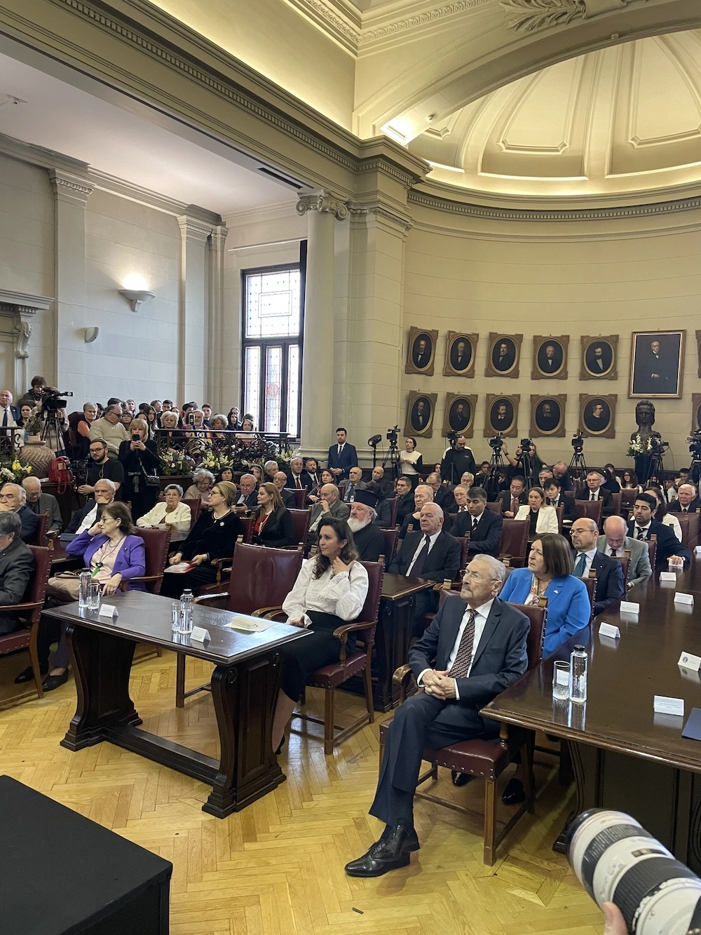 Dintr-o dată se face liniște. Ioan Aurel Pop, președintele Academiei Române, ia cuvântul. Aproape de finalul discursului s-a adresat și celor care îl critică pe marele poet sărbătorit astăzi. „În general sunt jalnici epigoni”.