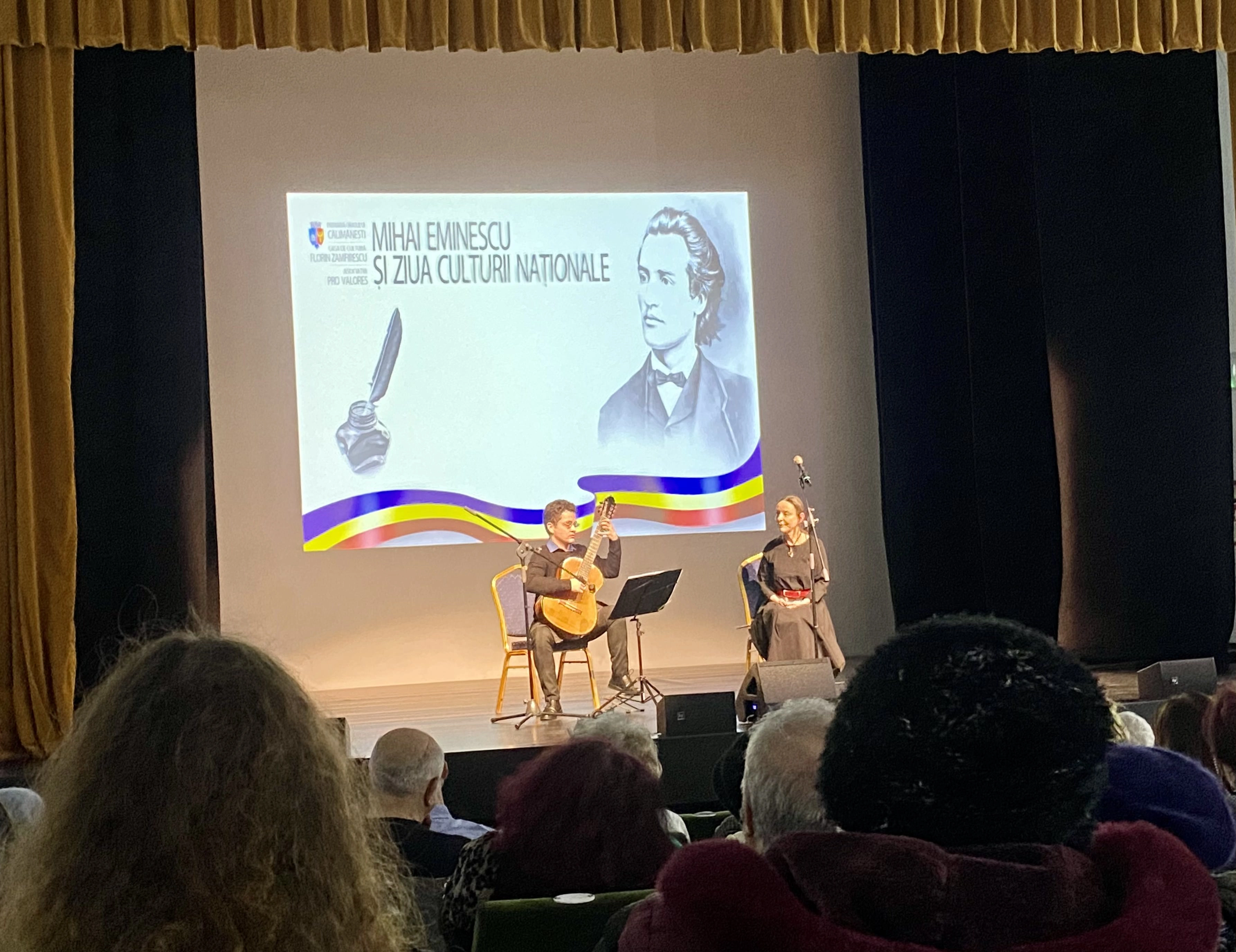 „Săru’mâna, la mulți ani, să trăiți!”, zice un bărbat în timp ce se așază pe unul din scaunele verzi ale Casei de Cultură din Călimănești. Era să întârzie. E plină sala. Pe ultimele două rânduri sunt doar adolescenți. Seara culturii naționale începe cu multe cuvinte înălțătoare despre Mihai Eminescu și despre artiștii pe care-i vom vedea pe scenă, actrița Lamia Beligan și muzicianul Tudor Niculescu Mizil. Rugămintea unuia dintre organizatori este să ascultăm fără să aplaudăm și fără telefoane. Prima rugăminte nu se aude. Începe: chitară, Eminescu. Aplauze. Chitară, voci de adolescente șușotind, Lucian Blaga. Aplauze. Chitară, aplauze. „Nu aplaudați!”, zice mâniat unul din spectatorii care au înțeles că performance-ul era gândit ca un tot neîntrerupt. Nu e luat în seamă. Nichita Stănescu, voci de adolescente mai clare, aplauze, chitară, Ana Blandiana, aplauze – acum aplaudă și domnul care ceruse liniște, semn că a cedat presiunii de grup. Nina Cassian, chitară, adolescente.