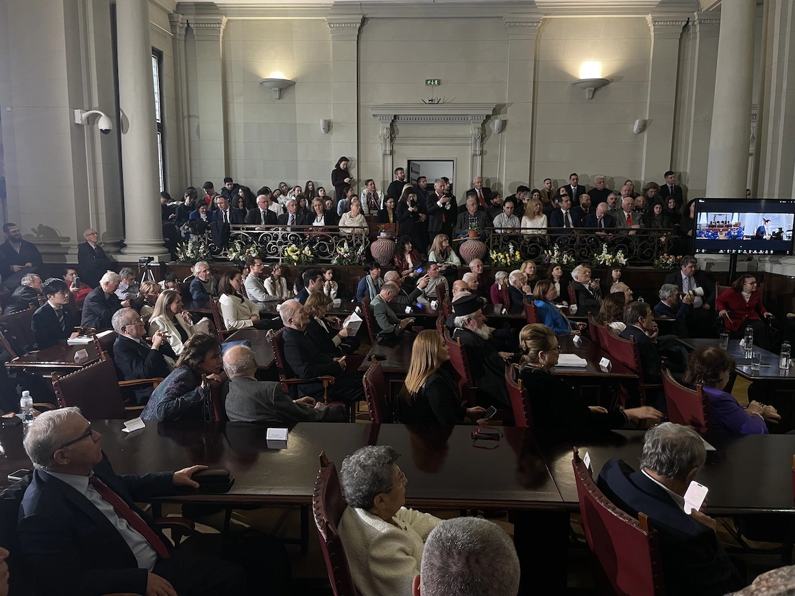Am ajuns în curtea Academiei Române chiar cu câteva minute înainte să înceapă evenimentul „de excepție” dedicat Culturii Naționale. E soare, însă aerul rece de ianuarie aproape că mi-a înghețat degetele. Un paznic îmi face semn pe unde să intru și mă iau după oamenii îmbrăcați în haine de blană, costum și pălării. În sală e zgomot și lumea caută un loc pe care să se așeze. Ambasadori, un preot, fostul președinte Emil Constantinescu, un bărbat îmbrăcat în port popular și altul cu un fular cu steagul României la gât sunt printre primele persoane care-mi sar în ochi. De jur împrejurul sălii sunt așezate decorațiuni florale, aranjate parcă până la plictiseală, ce ajung să dea un aer ușor nostalgic și rupt din alte vremuri evenimentului.