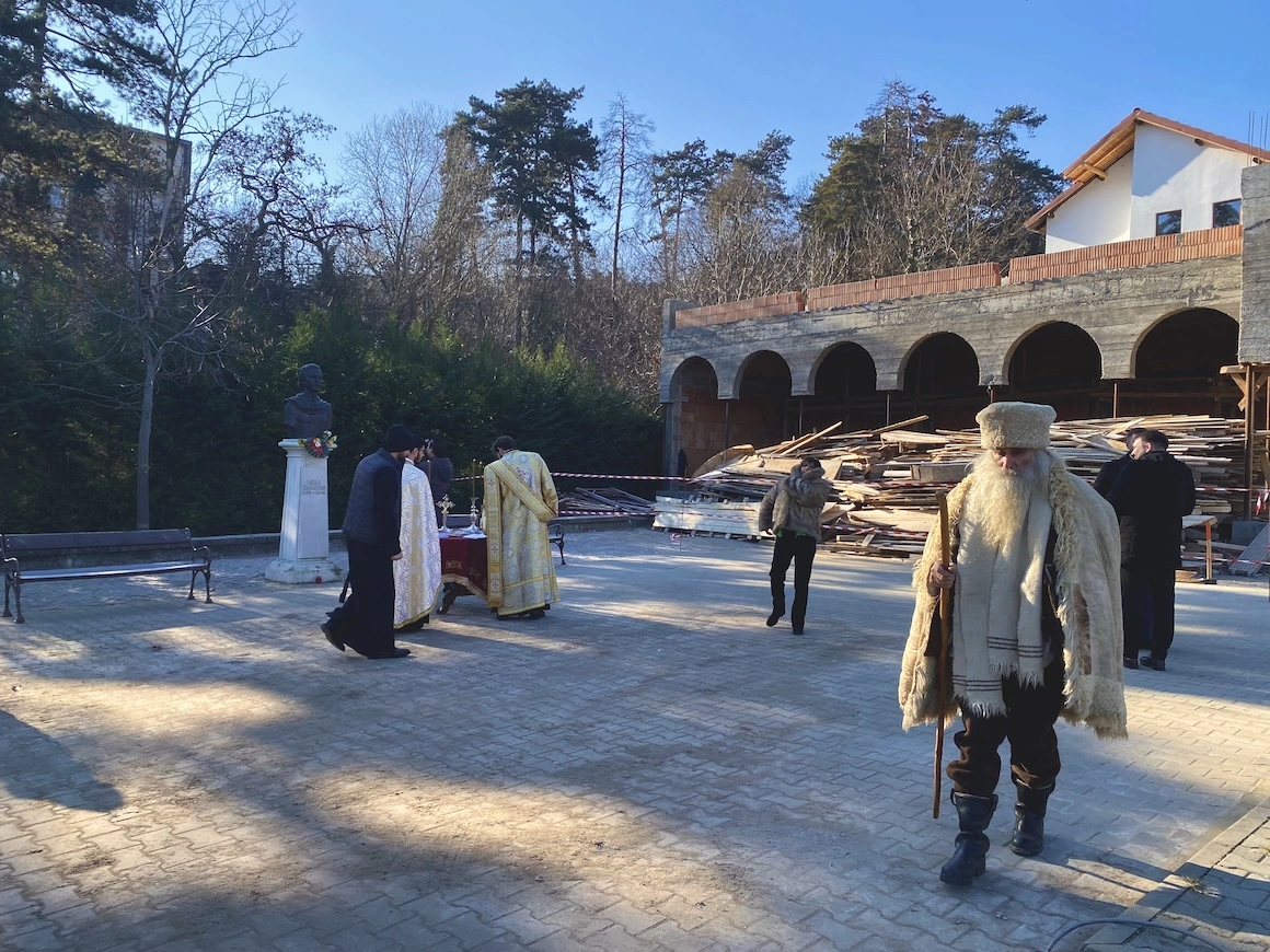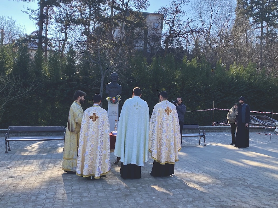 Înainte să ieșim în afara Episcopiei, unde se află un bust al poetului, preotul citește câteva cuvinte (adică multe) de la Arhiepiscopul Varsanufie – printre ele, despre cum „Eminescu a arătat că Biserica a fost maica spirituală a neamului românesc” și că „suntem singurul popor fără dialecte propriu-zise” – ceea ce cred că umflă niște piepturi smerite. Între cuvintele Arhiepiscopului se regăsesc și mesaje politice împodobite cu iubirea lui Eminescu de neamul nostru pur: „În 1885, Mihail Eminescu a afirmat cu tărie misiunea Bisericii în educarea morală și culturală a poporului român, precum și în lucrarea acesteia pentru realizarea și păstrarea purității de limbă și de neam [...] Este o operă într-adevăr națională aceasta, care va face gloria celor ce o vor fi întreprins-o, dacă va ieși bine, dar și stigmatizarea lor dacă vor păși cu ușurință la o lucrare pe cât de măreață și sfântă, pe atât de gingașă”.