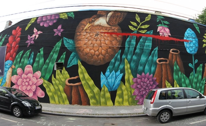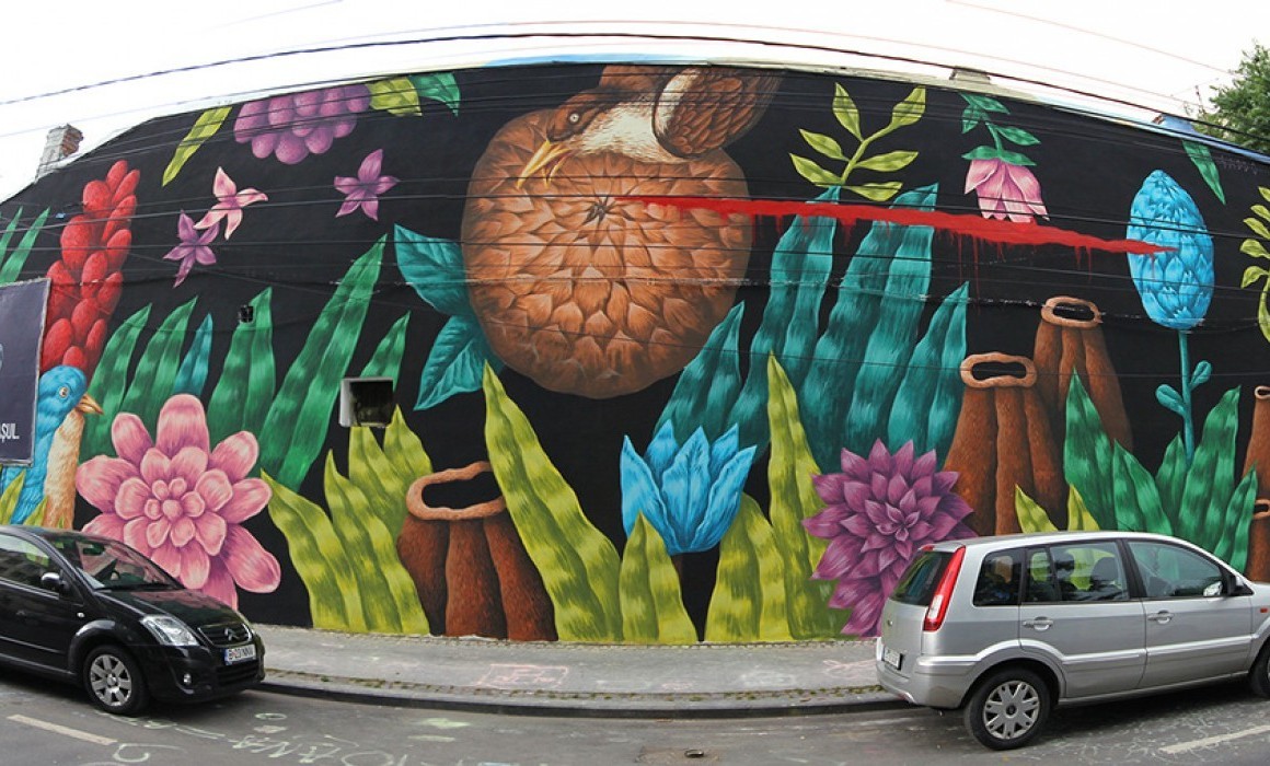 Anul ăsta la Street Delivery, trei grafferi au creat un mural uriaș, care răstoarnă expresia neaoșă „Pe-afară-i vopsit gardul, înăuntru-i leopardul”.