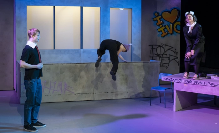 Spectacolul „Nu vorbim despre asta" e bazat pe povești reale, documentate și ficționalizate, vizează un microcartier dintr-un oraș la începutul anilor '90.