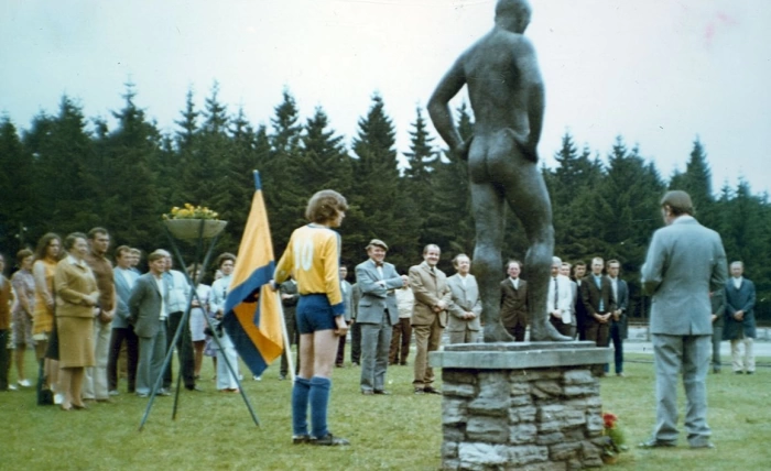 Un sculptor dă din coate încercând să alieze pretențiile organelor oficiale și viziunea sa artistică mai mult sau mai puțin suverană. „Der nackte Mann auf dem Sportplatz” pune niște întrebări vechi de când lumea, pe care societatea comunistă le-a cristalizat atât de obsesiv și de acut, încât a ajuns să le scape de sub control.