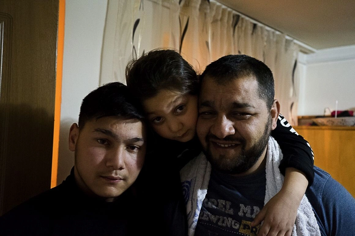At home, in the Radu of Afumați neighborhood of Ploiești, Digudai sits on a carpet, next to a closed heating stove. He takes a long drag from a cigarette and a swig of vodka from the bottle. He’s a little upset—some family problems. “Play that song again, my queen,” Digudai tells his daughter, referring to some Brazilian funk, then a children’s song with Snow Queen, both his favorites. After the girl goes to the computer and pushes play, he holds her in his arms and kisses her cheeks.