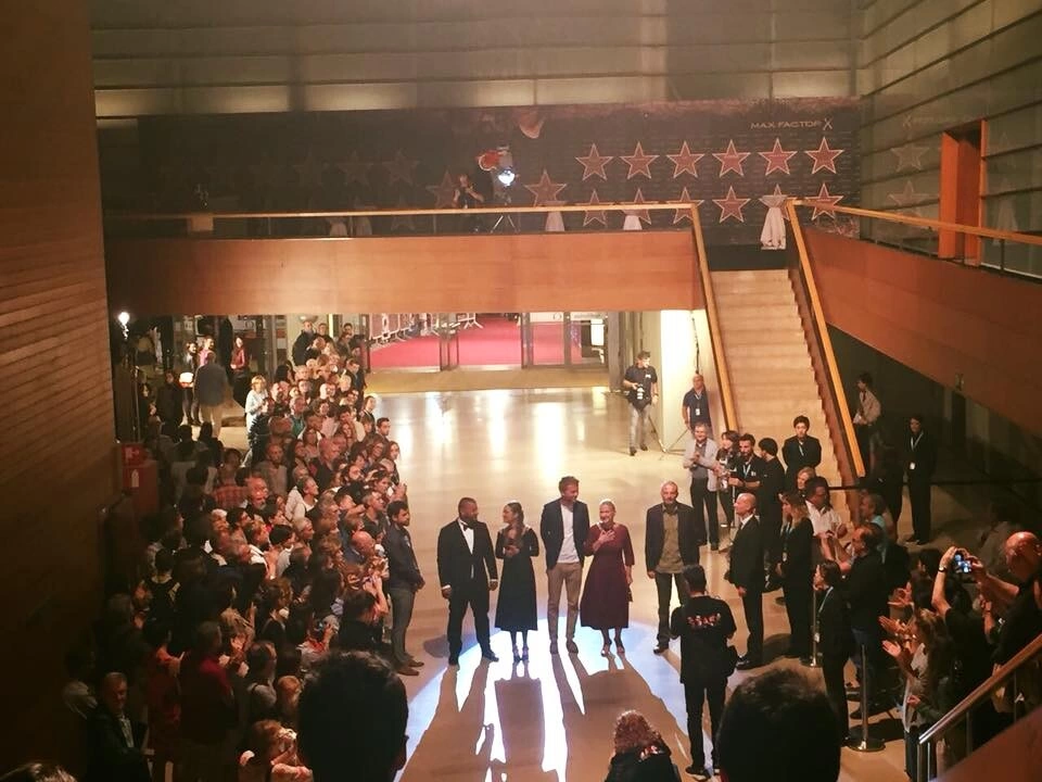 Director Ivana Mladenovic, writer Adrian Schiop, producer Ada Solomon along with the rest of the film crew of Soldiers. Story from Ferentari stand beside him just after the premiere. They’re all dressed to the nines. Here, Vasile Pavel, Digudai, is no one’s bodyguard.