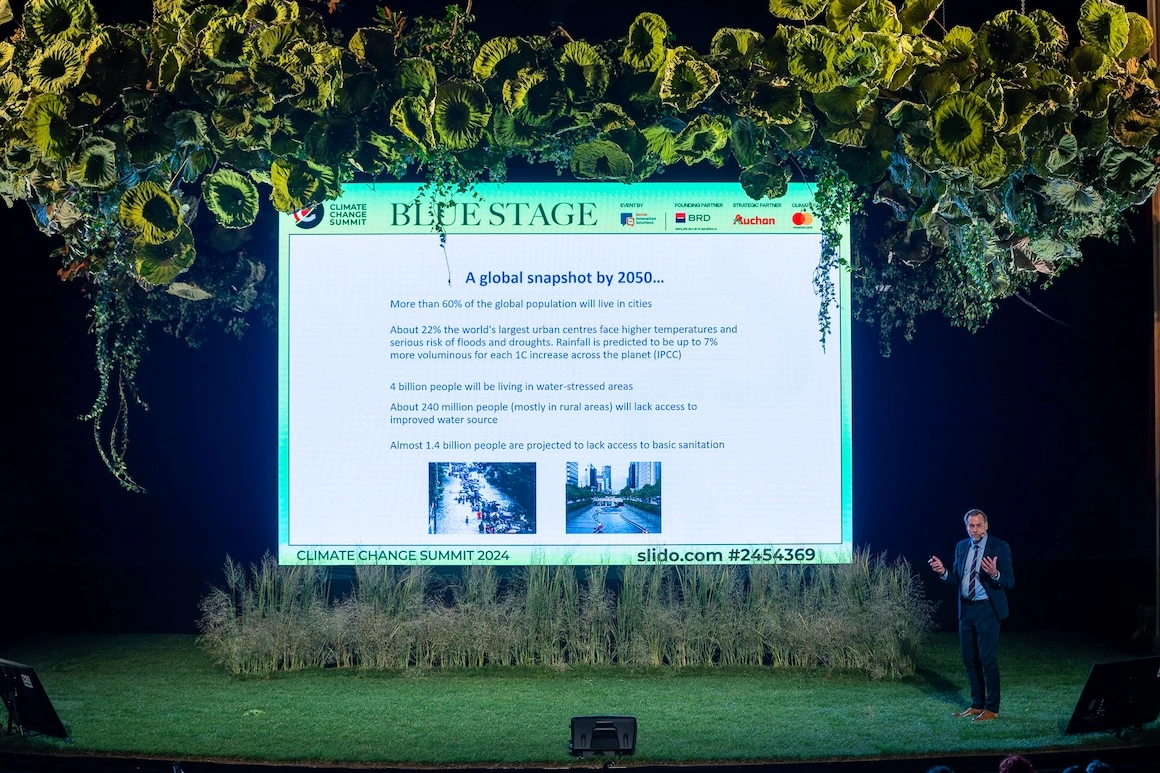 "I got fascinated by water because it underpins so many things: nature, the economy, culture. It doesn't matter what you work with, you can always find a water angle to it. That’s why I think I've stayed in this field for so long, because when you work with water, you can always find new perspectives", Tropp told me at the end of the first day of the summit, after he and other guests addressed various aspects of climate change on the stage of the National Opera in Bucharest.