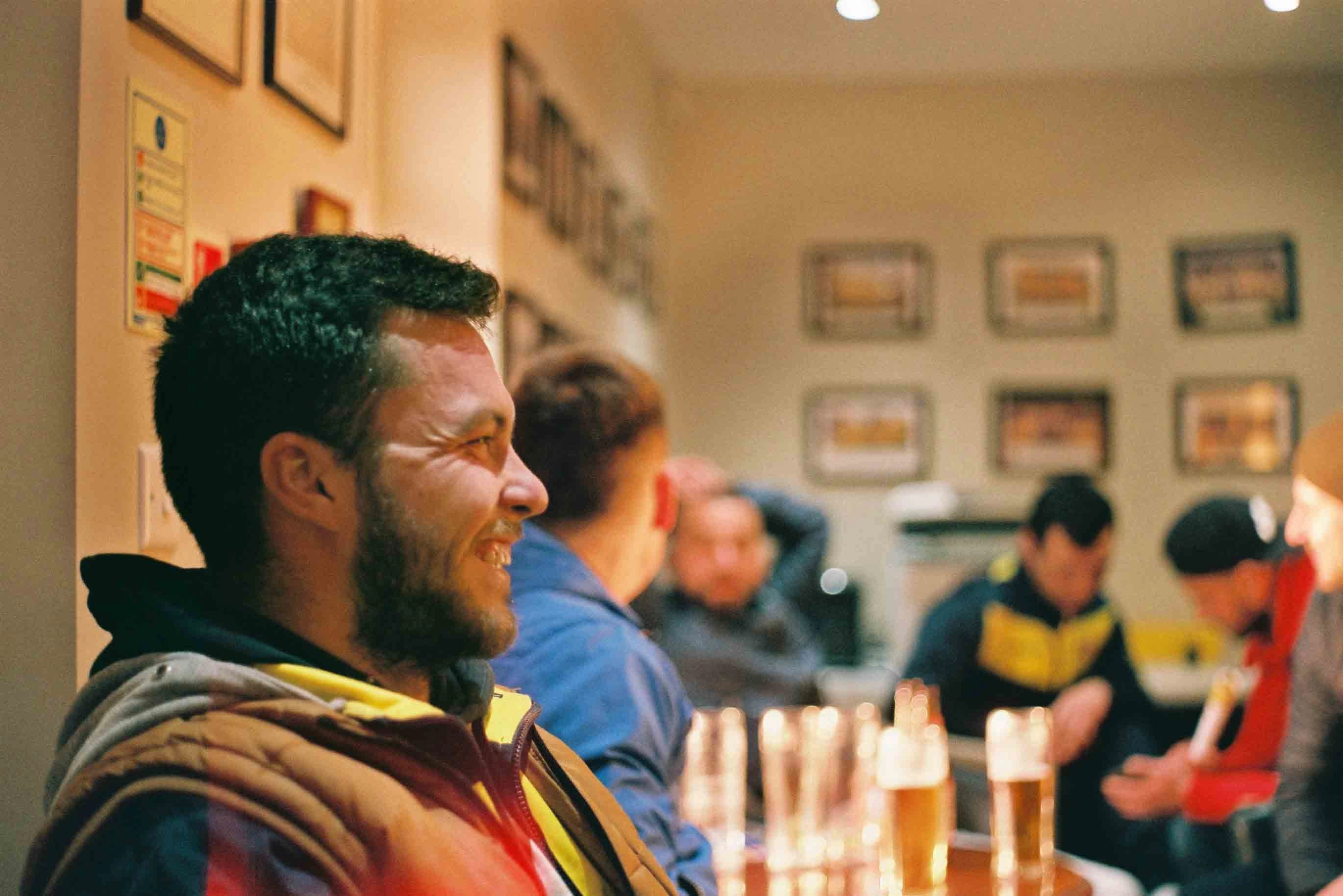 I immediately recognize Ionuț, the founder of FC Romania. I know him from his Facebook profile, but also from his interviews for the BBC, Vice and The Times. The team was formed in 2006 by Romanian immigrants in the UK who had played at various football clubs in their home country. Now, the majority of the players and manager Ionuț work on construction sites in London, and, on Saturdays, they play at a semi-professional level in English football's 8th league.