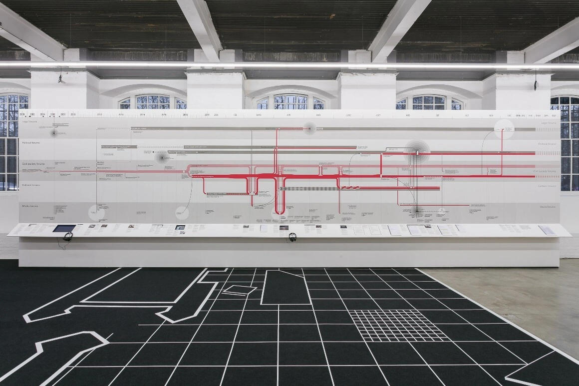 A recent example is our contribution to documenta 14, in 2017, where our investigation into another neo nazi killing, that of Halit Yozgat by the NSU, was excluded from court and we chose to show it at the documenta in Kassel, 500m away from the murder scene. Documenta became the court and people started to come and see it and the whole society of Kassel visited it and understood what happened. The police chef who was responsible for the investigation back then had to come and sit in the museum and look at the video and respond, etc.. It kind of replaces the court, while at the same time asking questions that a court would not have asked. So they are very much complementary sometimes, even though they seem like very different spaces.