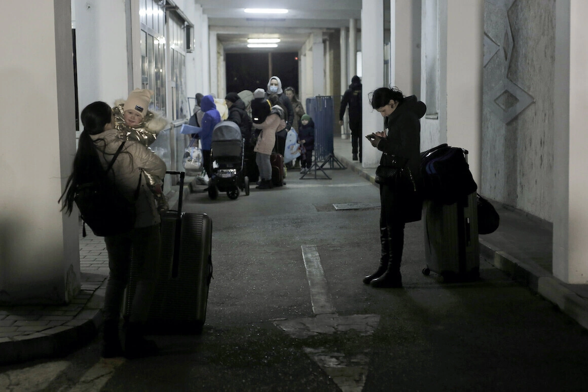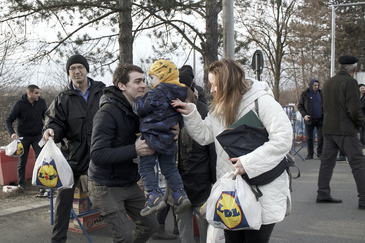 There’s this image that’s kept repeating over the past few hours here, at the Siret customs checkpoint in northern Romania: Ukrainian families, most of them mothers and their children, are crossing the border, on foot or by car. They’re winding up surrounded by groups of volunteers who offer them sandwiches, water, food packages, diapers, prepaid SIM cards, and so on. At times like these, a lot of these people on the run from the war burst into tears.