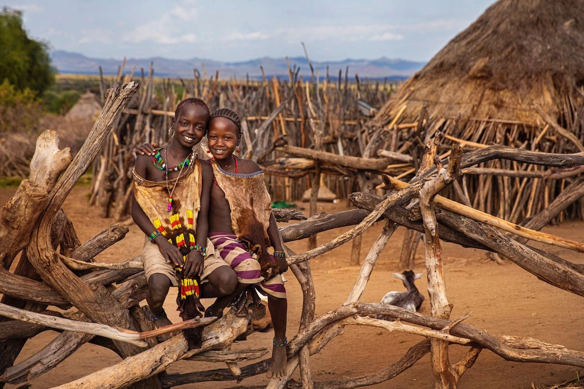 For example, she photographed two friends from the southern Ethiopian Hamar community. The people there are very connected to nature and craft their clothes from goat skin, live under hay roofs, and build fences out of branches. The girls work in agriculture, cook, fetch water from the river, and care for the children. After they turn eight, their parents send them to shepherd goats.